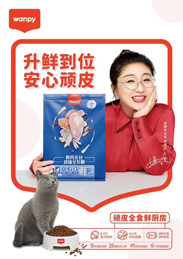 2021年,,,,,,,,顽皮将品牌主张驻足在“鲜”,,,,,,,,推出鲜肉无谷类产品矩阵——食材直采属地人类食物级鲜肉,,,,,,,,以0-4℃冰鲜冷藏车运输,,,,,,,,2小时便可抵达工厂,,,,,,,,经由布勒双螺杆膨化手艺,,,,,,,,4小时鲜肉成粮。。。。。。速率之外更有清静包管,,,,,,,,每一款顽皮鲜肉粮都需在经CNAS审核认证的检测中心经由25道磨练工序,,,,,,,,切合41项检测指标,,,,,,,,检测效果,,,,,,,,全球同标。。。。。。